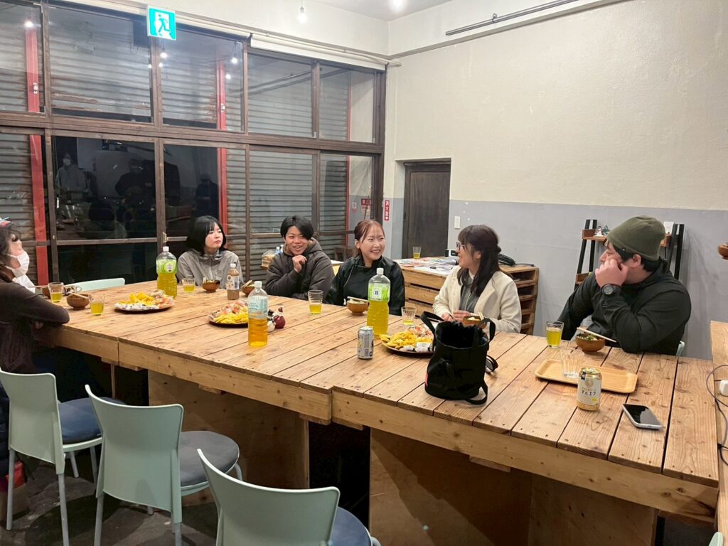 トーク後は軽食の鍋料理やお菓子、お酒などを楽しみました!一つの机を囲むことで自然と交流が生まれており、終始和やかな雰囲気でした😊