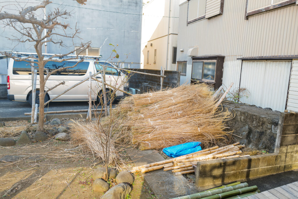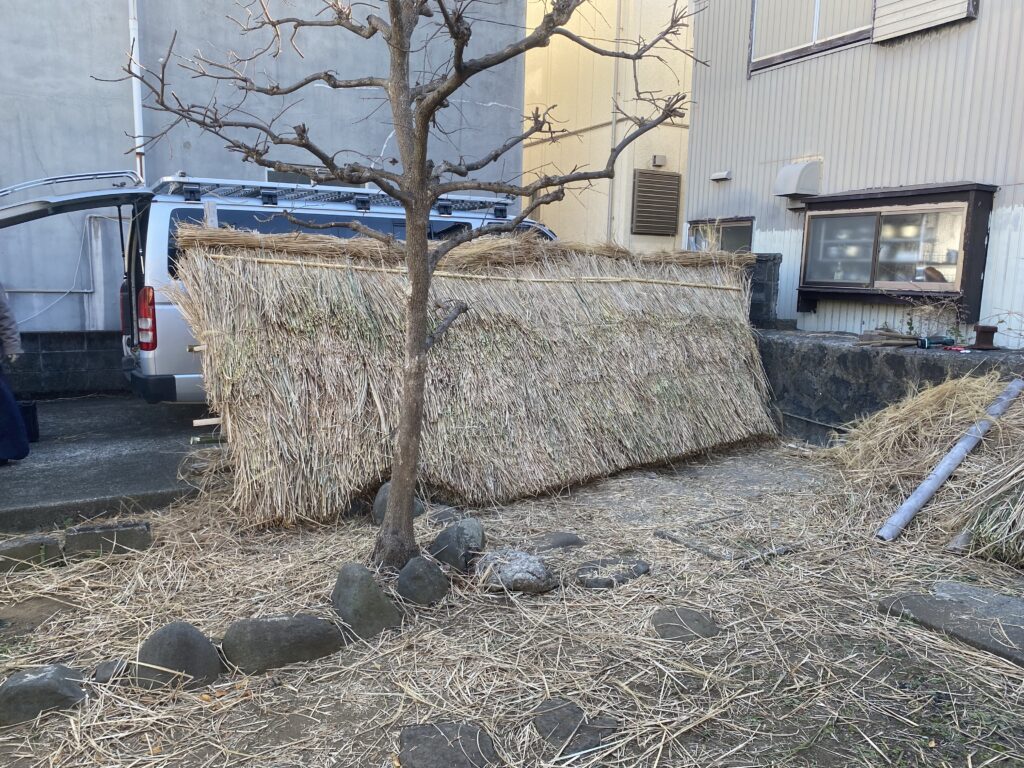 今回は屋根ではなく、弊社で管理しているso-an赤橙の庭の垣根を茅葺き技術を応用して葺くことで、別角度での可能性を探ってみます!